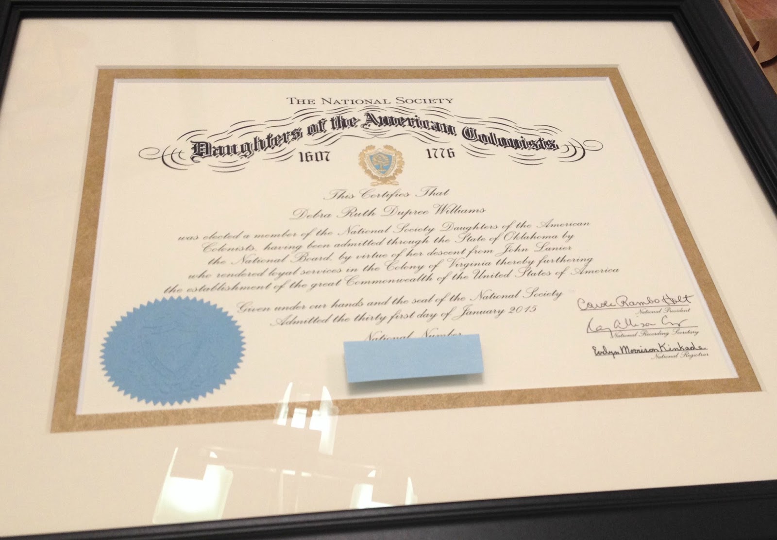 All I had at my disposal was a set of two books called The DuPre Trail, compiled by Emimae Pritchard Langley, given to me by my dad’s twin brother, William. I’d had these since I was sixteen. When I tried to make sense of the information inside, it was like trying to read the proverbial Greek. So, they sat, untouched, in a drawer or box for all those years, until one day at church, someone mentioned that one of our choir members was the Regent of the local chapter or the Daughters of the American Revolution. I approached her and told her I might be able to prove my lineage for DAR. She put me in touch with the chapter registrar and a whole new world was opened up to me. Since then, I have proven my DuPree line for the DAR and my Lanier line for the Daughters of the American Colonists.